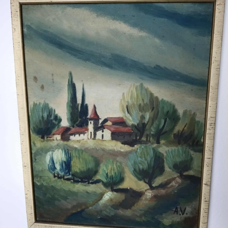 Quadro vintage – quadro antico Villagio natura – dipinto a olio su tela